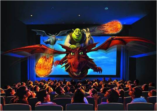 4D动感影院是在3D立体影院基础上,加上观众周边环境的各种环境特效和专业动感座椅而成的新一代数码影院。环境特效一般是指闪电模拟/下雨模拟/降雪模拟/烟雾模拟/泡泡模拟/降热水滴/振动/喷雾模拟/喷气/喷雾/扫腿/耳风/耳音/刮风等其中的多项。在观影过程中,刺激观众的视觉、听觉、触觉、感觉等各个感官,再现影片主题所涉及的环境内的各种细节,以及观众在特定环境内的遭遇等,营造出使人身临其境的整体效果。