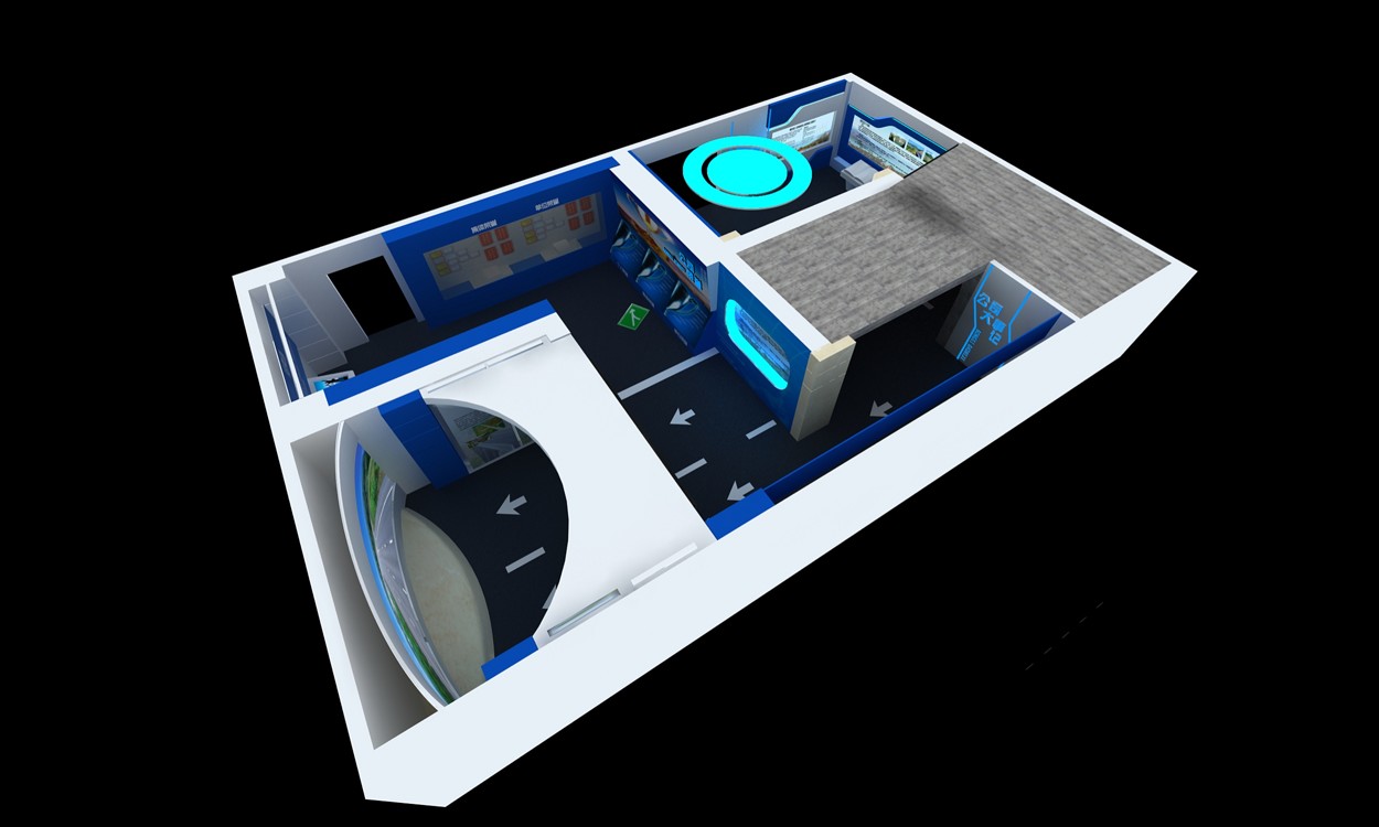 本次涪南展厅设计主要以展示涪南公司实力为主,互动多媒体产品为辅,空间规划要为产品做铺垫,产品要合理的融入到空间里,合理搭配声、光、电等元素,充分利用图片、文字、视频和3D虚拟现实等载体,坚持科技、高档的原则,力求个体突出、整体协调,展现产品性能和企业实力。
