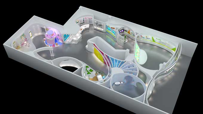 百亚个人护理体验馆展厅设计施工由重庆西南信息设计施工百亚个人护理体验馆展厅由企业形象厅, 技术科普厅,产品体验厅,未来厅组成。