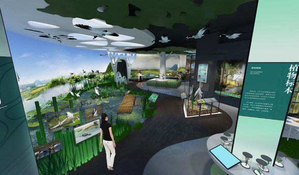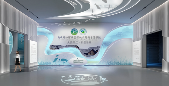 展厅以安顺邢江河国家湿地公园的湿地为主体,共分为五部分,全面介绍湿地生态及生物多样性,紧密融合邢江河在地文化,打造人与自然的和谐共生。
