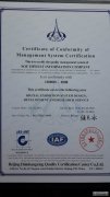 通过全公司员工的共同努力,我公司与2013年7月获得ISO9001:2008证书,为了加强管理,促进各项工作,落实体系的各种要求,提供了很好的基础,促使公司产品质量的提高,为公司长远目标打下坚实基础