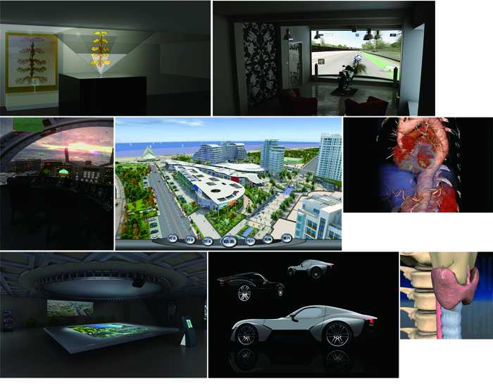 石油、电力、煤炭行业多人应急演练, 交通、消防应急演练,多人多工种协同作业,模拟驾驶、训练、演示、教学、培训等, 军事模拟、指挥、虚拟战场,生物工程(基因/遗传/分子结构研究),虚拟医学工程(虚拟手术/解剖/医学分析),建筑视景与城市规划、矿产、石油,航空航天、科学研究可视化等。